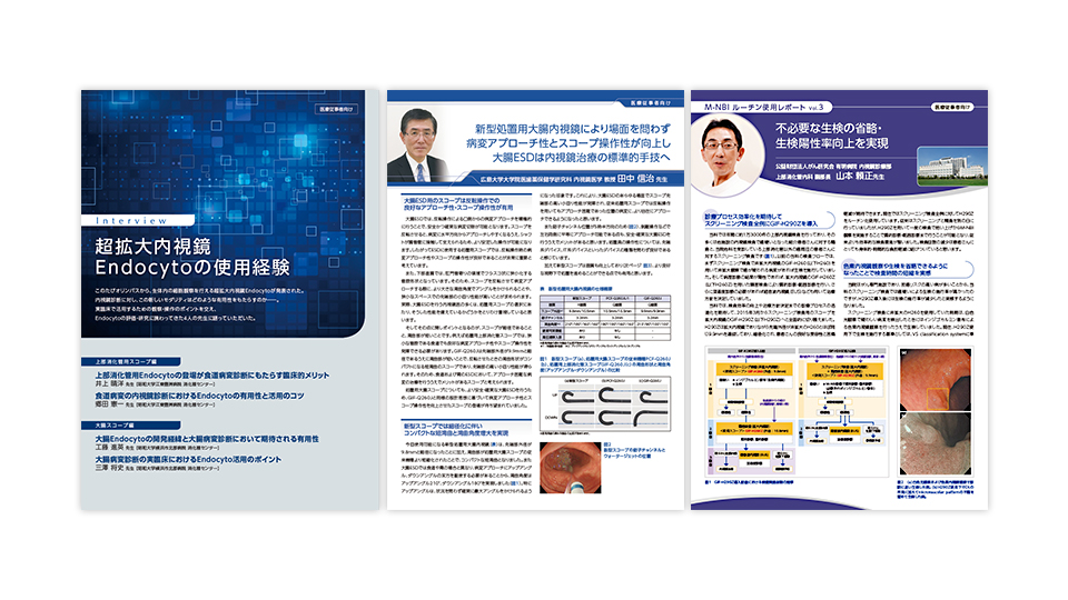 THUNDERBEAT technique interview (Olympus Corporation), introduction of a gynecology clinic (Atom Medical Corp.), article covering the American Society of Nephrology (Chugai Pharmaceutical Co., Ltd.), article covering the World Federation of Hemophilia (Chugai Pharmaceutical Co., Ltd.), user interview on new gastrointestinal endoscopic product (Olympus Corporation)
