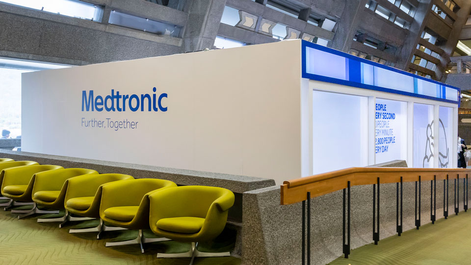 第72回日本胸部外科学会定期学術集会 Space Design Category スペースデザイン Creative 企画提案、デザイン、パース制作、図面作成 アプローチ 会場のロケーションを有効活用したブースデザイン。